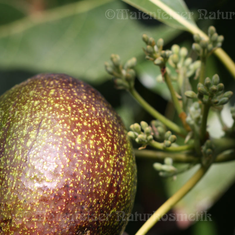 Avocadoöl gehört zu den wenigen Fruchtfleischölen wie Cocos, Olive und Sanddorn, aus denen direkt aus dem Fruchtfleisch ein Öl gepresst wird. Das Öl wird aus den überreifen Früchten gepresst und ist nativ von dunkelgrüner Farbe mit einem leicht säuerlich-fruchtigen Geruch. (Raffiniertes Öl ist eher hell und blass, meist geruchlos.) Unser Öl schmeckt nussig, mit einer leichten Kräuternote und arttypisch nach Avocado. Das Avocadoöl hat einen sehr hohen Gehalt an Öl- und Palmitinsäure und ist gespickt mit den öllöslichen Vitaminen von A, B, D und E.