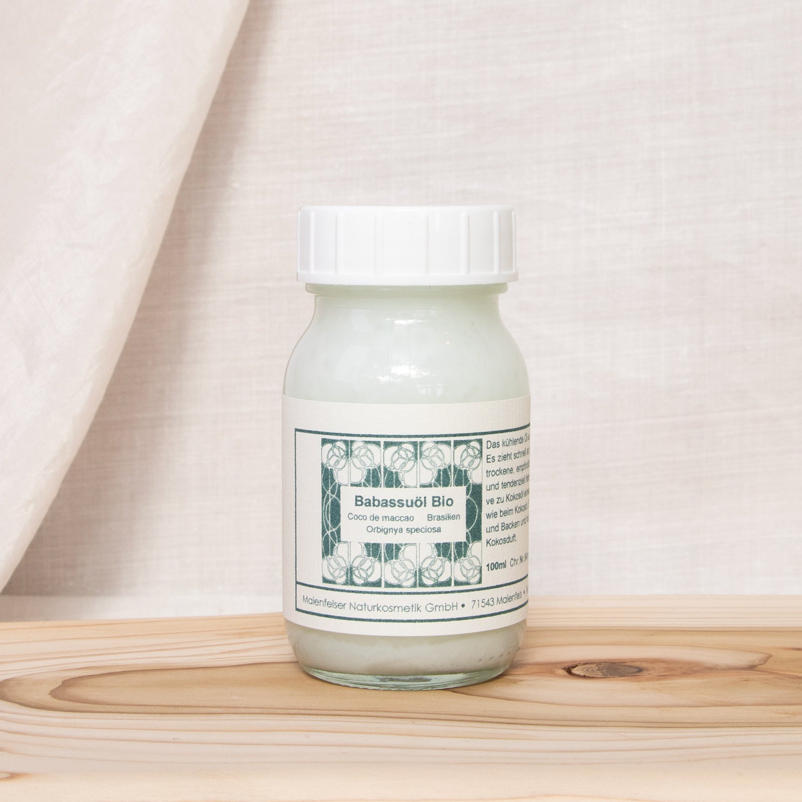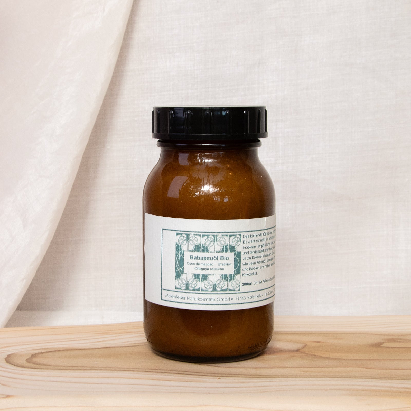 Das Babassuöl stammt von der Babassufrucht der hohen Babassupalme. Sie kommt hauptsächlich aus Brasilien, wo sie in großen Wildbeständen in den Gebieten Malto Grosse, Bahia etc. verbreitet ist. Auf einer Babassupalme können 200 bis 400 Nüsse sein, die in traubenähnlichen Gebilden wachsen. Die Nüsse sind länglich braun und bis 12 cm lang. Das Öl hat eine große Ähnlichkeit mit Cocosöl durch seine gesättigten Fettsäuren und ist bei Zimmertemperatur in einem festen Zustand.