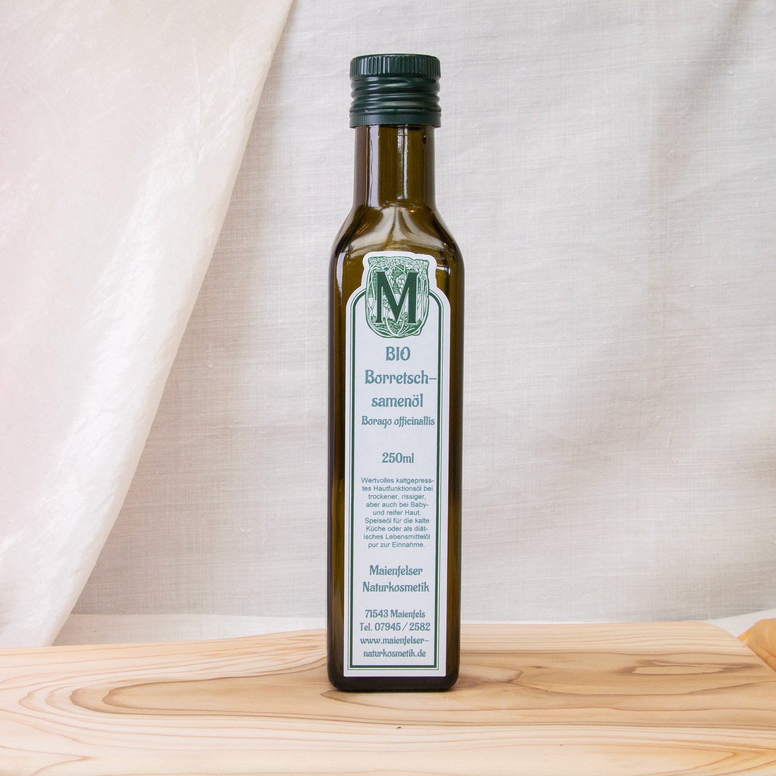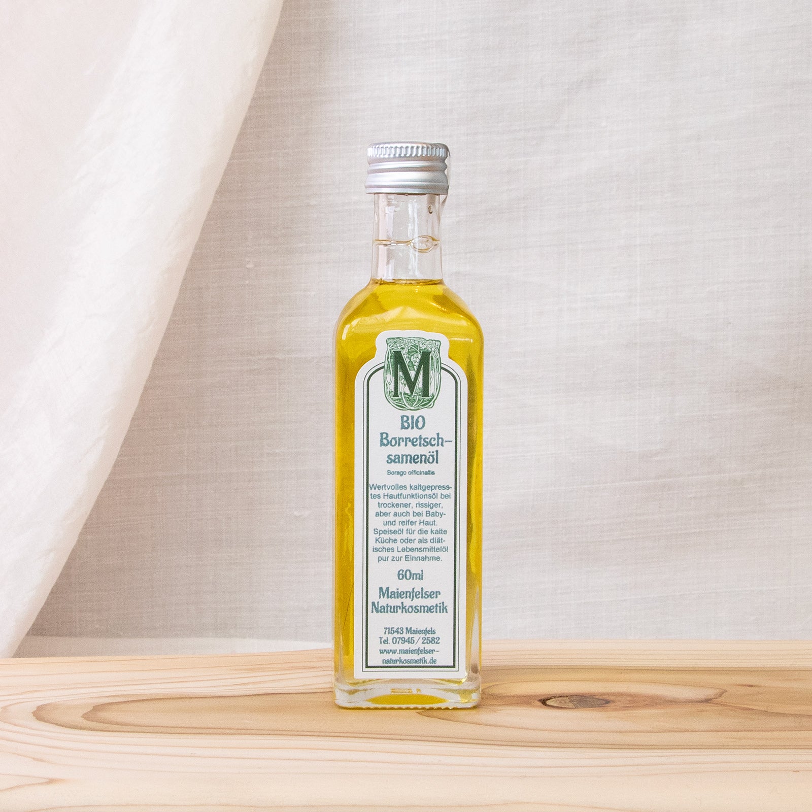 Kosmetische Verwendung: Wertvolles Öl bei trockener, schuppiger, rissiger, faltiger Haut, aber auch bei Baby- und Altershaut. Gut in Mischungen mit oxidativ festen Ölen als Körper- oder Massageöl, da Borretschöl nicht sehr stabil ist. Zum Einreiben in der Armbeuge von Babys und Kleinkindern bei Mangel an gamma-Linolensäure. Gut in Haarpflegeprodukten bei strapaziertem und trockenem Haar.