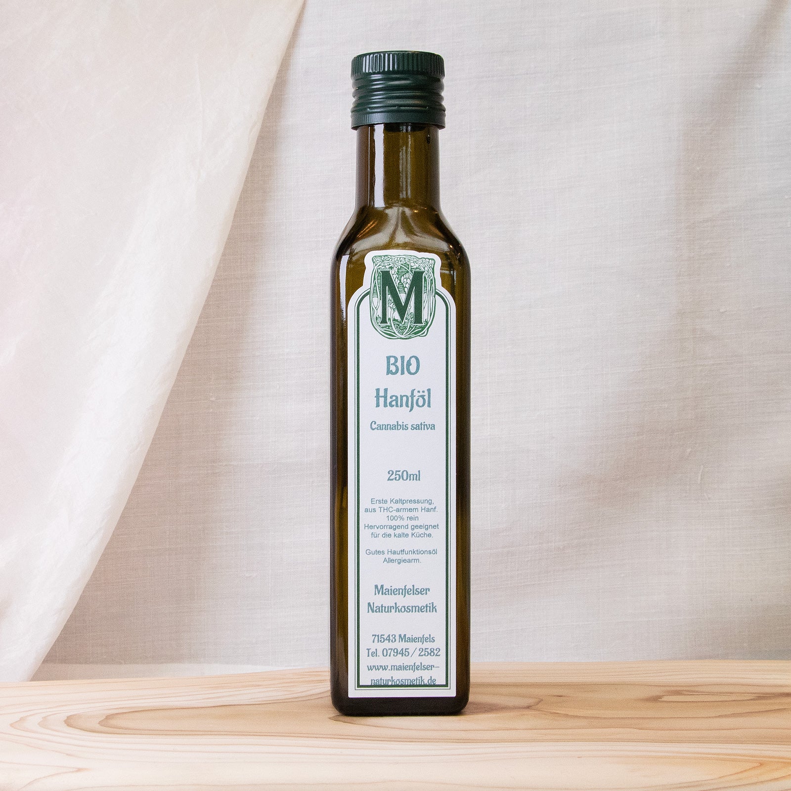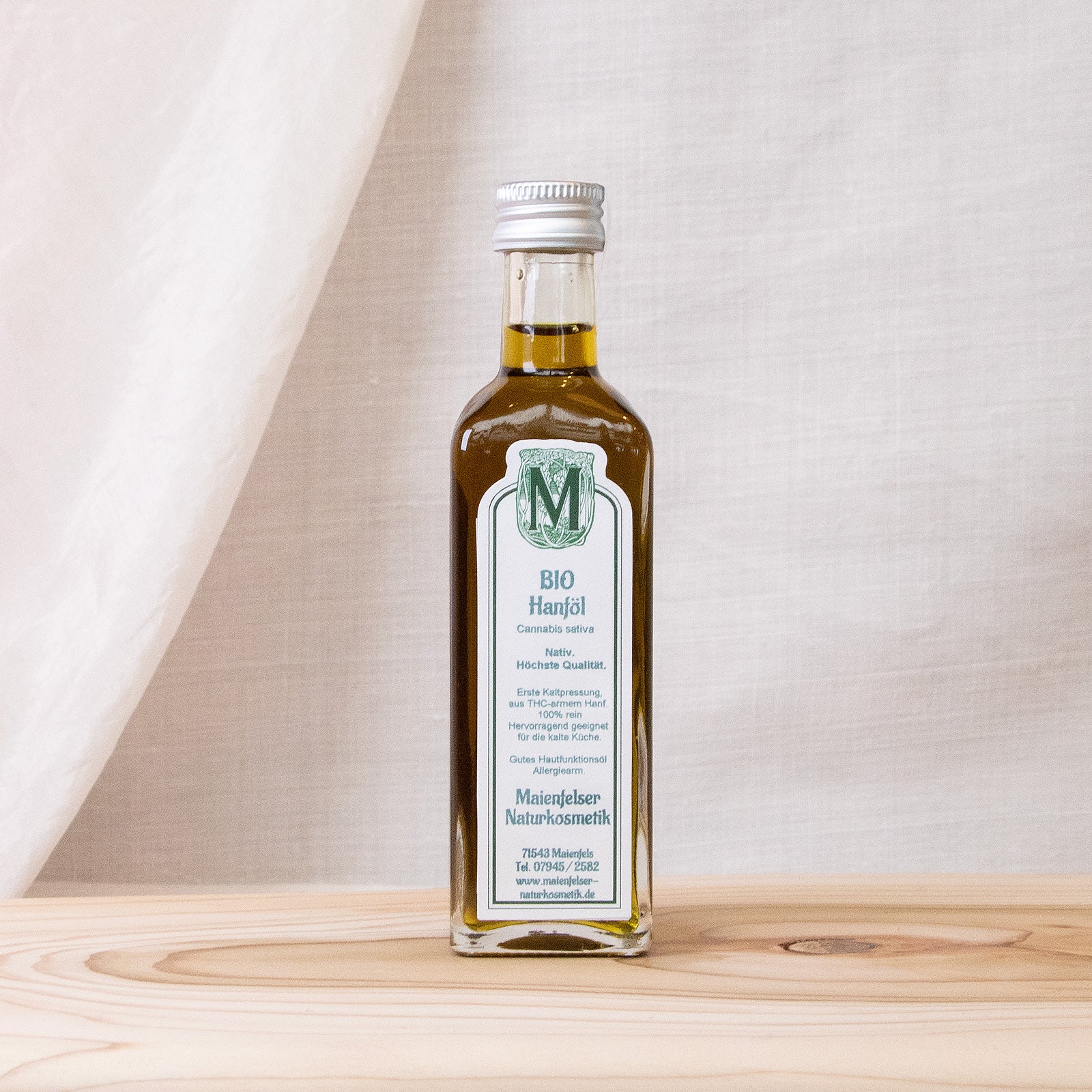 Kosmetische Verwendung: Durch die hautfettähnliche Zusammensetzung des Hanföls ist dieses hervorragend für die empfindliche, sensible, trockene und reife Haut geeignet. Die besonderen Pflegeeigenschaften der mehrfach ungesättigten Fettsäuren machen es in der Hautpflege zu einem wertvollen Haar- und Hautfunktionsöl mit regenerierenden und zellerneuernden Eigenschaften. Es zieht sehr schnell ein und hinterlässt ein samtenes Hautgefühl.