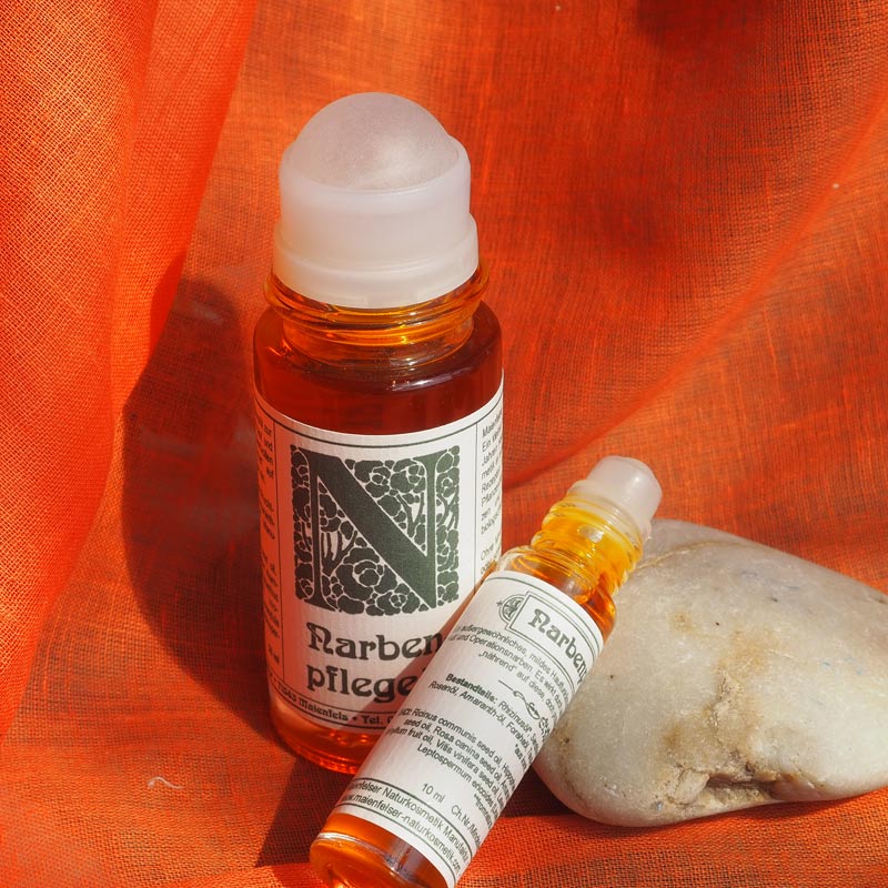 Zur Pflege und zum Schutz von vernarbter Haut und Operationsnarben haben wir ein außergewöhnliches Hautfunktionsöl entwickelt, das durch seine wertvollen Pflanzenöle in optimaler Weise "nährend" auf diese doch problematischen Hautschichten einwirkt. Es ist kein Heilmittel im Sinne des Arzneimittelgesetzes, sondern ein reines Hautfunktionsöl - sehr mild und angenehm pflegend.
