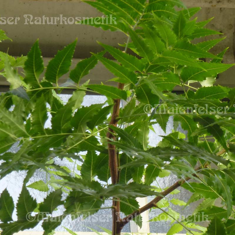 Ein kaltgepresstes Öl aus den Neem-Samen (Niem). In Indien ein Klassiker in der Ayurveda und zur Pflege bei problematischer Haut. Zur vorbeugenden Abwehrfunktion bei Bakterien, Viren, Pilzen, Insekten und Läusen (auch Kopfläuse). Hervorragend auch als Pflanzenschutzöl zur Abwehr von Frassinsekten.