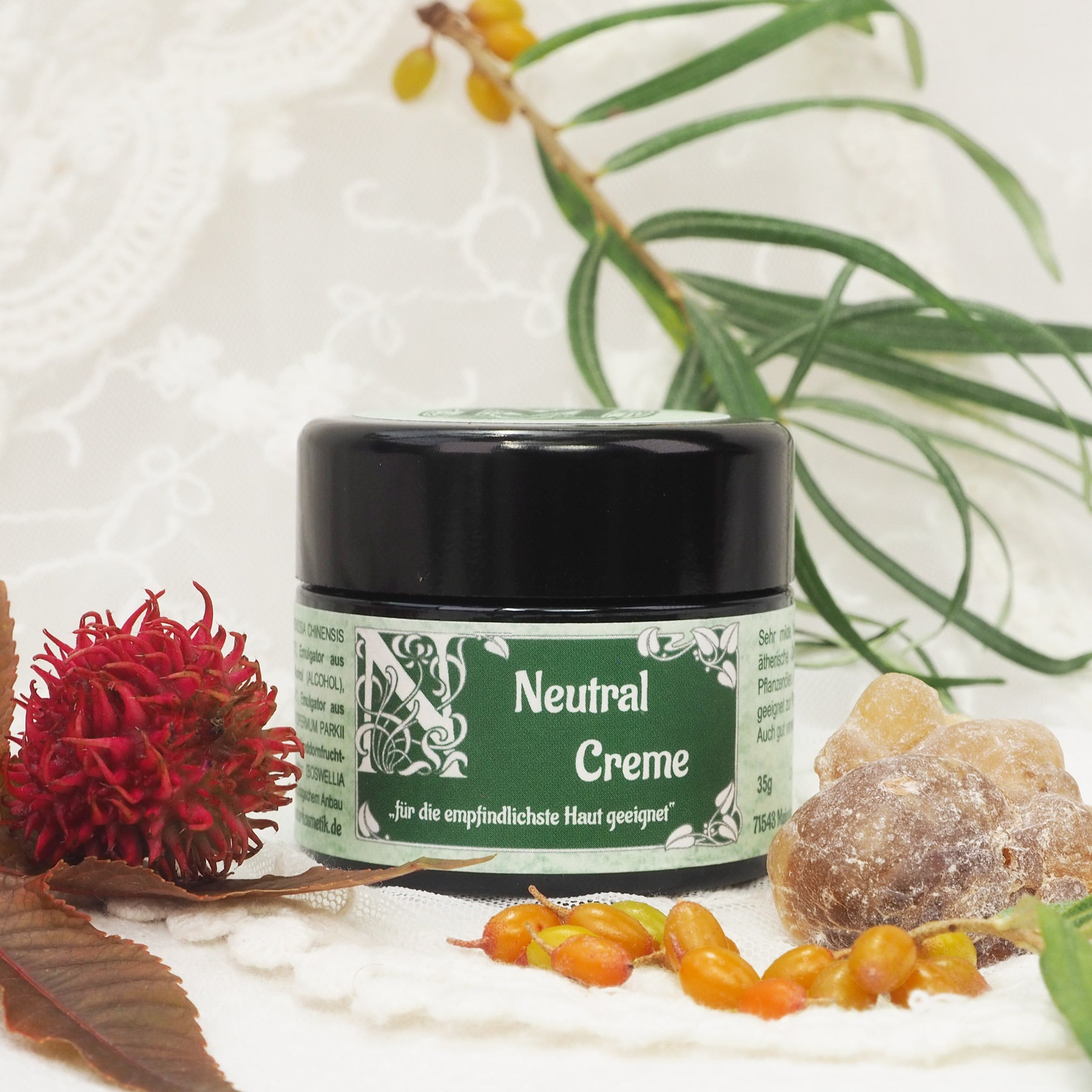Eine Feuchtigkeitscreme der besonderen Art ist unsere Neutral Creme. Neutral das heißt ohne Kräuterzusätze, ohne ätherische Öle, ohne zusätzlichen Duft. Sie ist gedacht für Personen die auch in der Naturkosmetik Schwierigkeiten haben, eine für sie verträgliche Creme zu finden. Sie eignet sich gut für das Untermischen eines bevorzugten ätherischen Öls oder von Bachblüten. Als Basis dienen hochwertigste Pflanzenöle und Quellwasser. Die Farbe ergibt sich nur durch das Sanddornöl. Ein geringer Anteil von Weihrauch und unser Grapefruitkernextrakt sorgen für eine gute Stabilisierung. Sehr gut verträglich. Die gleiche Zusammensetzung gibt es auch bei der Neutral-Lotion zur allergiearmen Pflege für den Körper. (Siehe unter Lotionen)