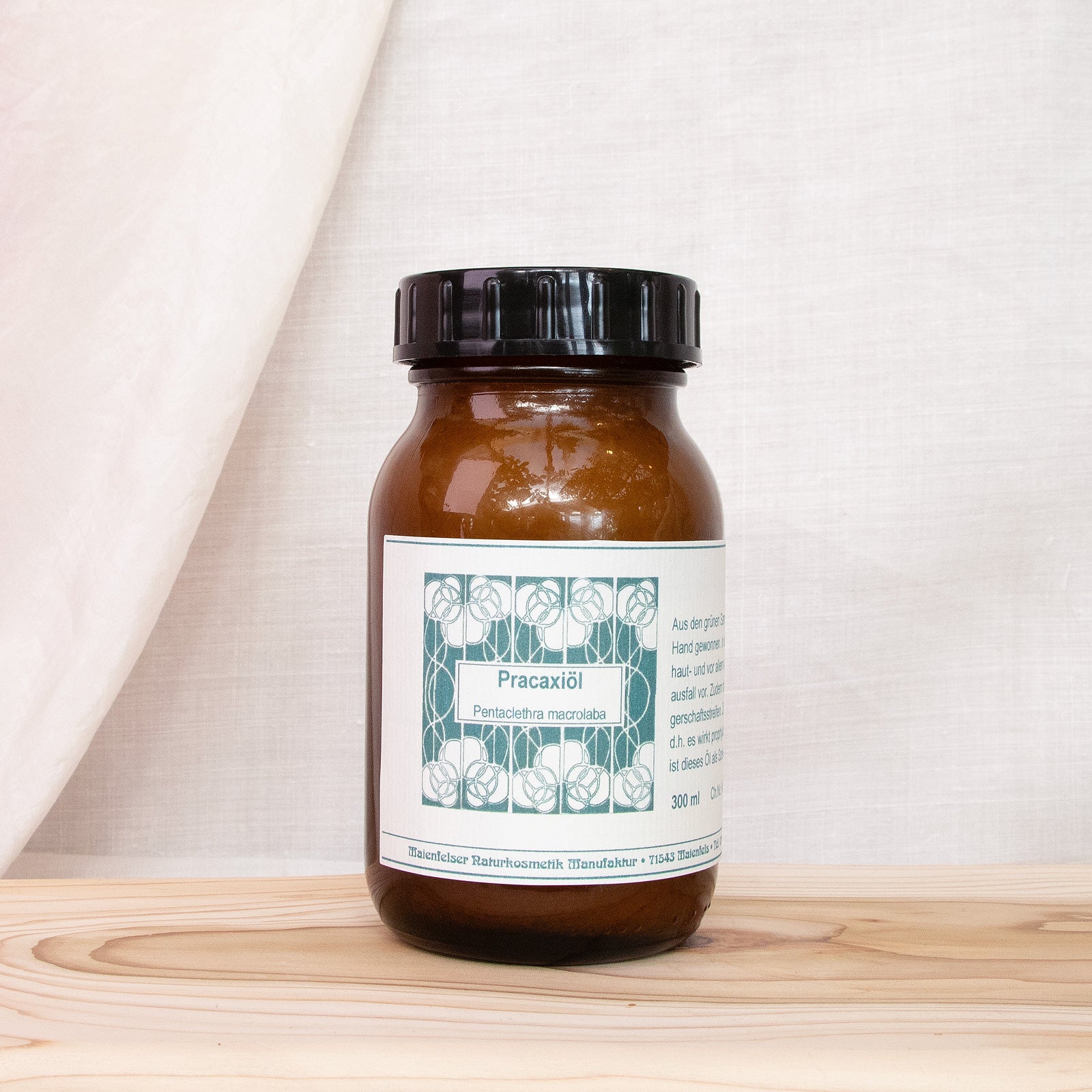 Häufiger Urwaldbaum mit wunderschönen Blättern (wie die Mimose, bloß größer) aus der Familie der Mimosengewächse. Aus den grünen Samen, die ähnlich wie in einer Erbsenschote sind (nur größer), wird das Öl von Hand extrahiert, indem die zerkleinerte Masse vorher gekocht wird, was einige Besonderheiten aufweist. So hat Pracaxiöl einen der höchsten Anteile der wertvollen Behensäure und übertrifft sogar das 'Behenöl' (Moringa oleifera), das