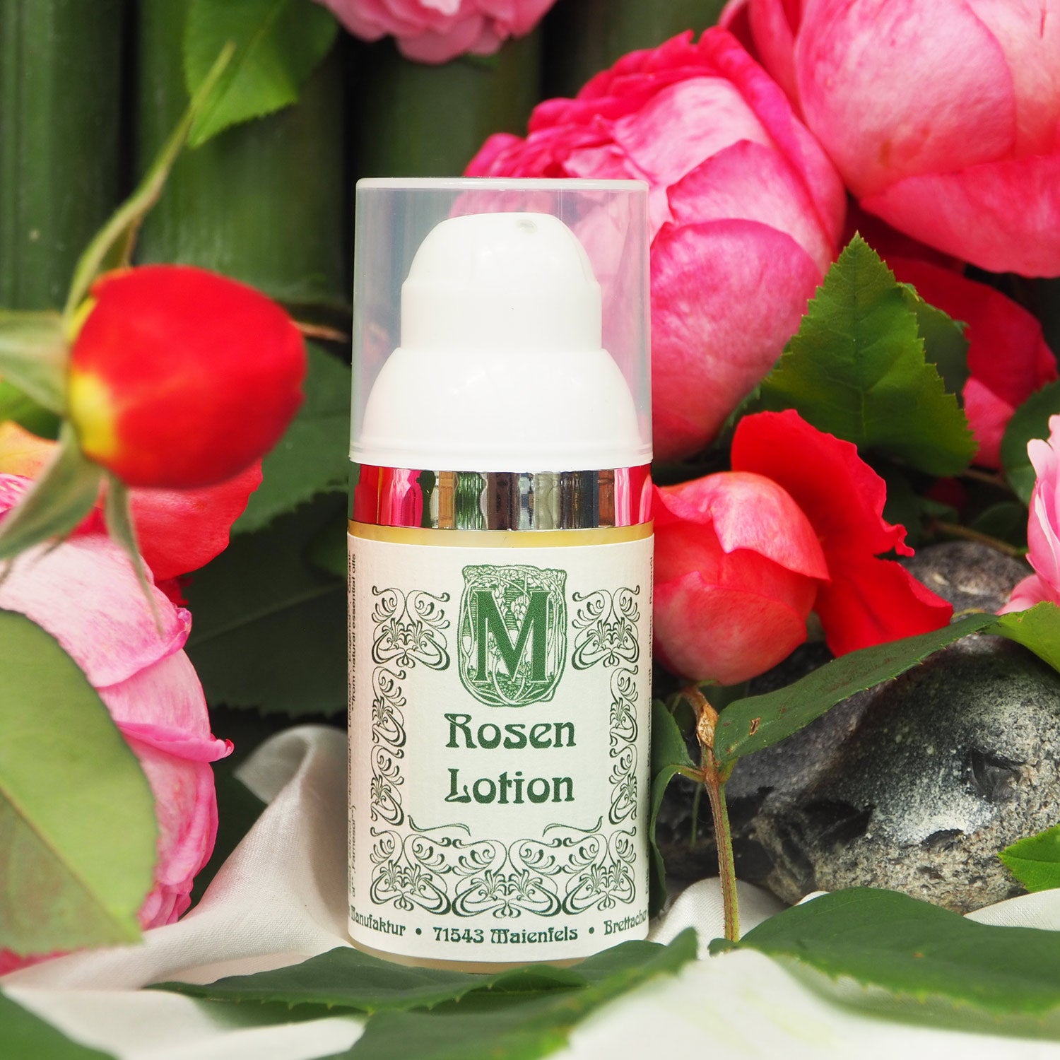 Eine wunderschöne Rosen-Lotion in Symbiose mit unserer Rosencreme. Mit höherem Feuchtigkeitsanteil, aber sonst wie unsere normale Rosencreme. Inhalt siehe Rosencreme.