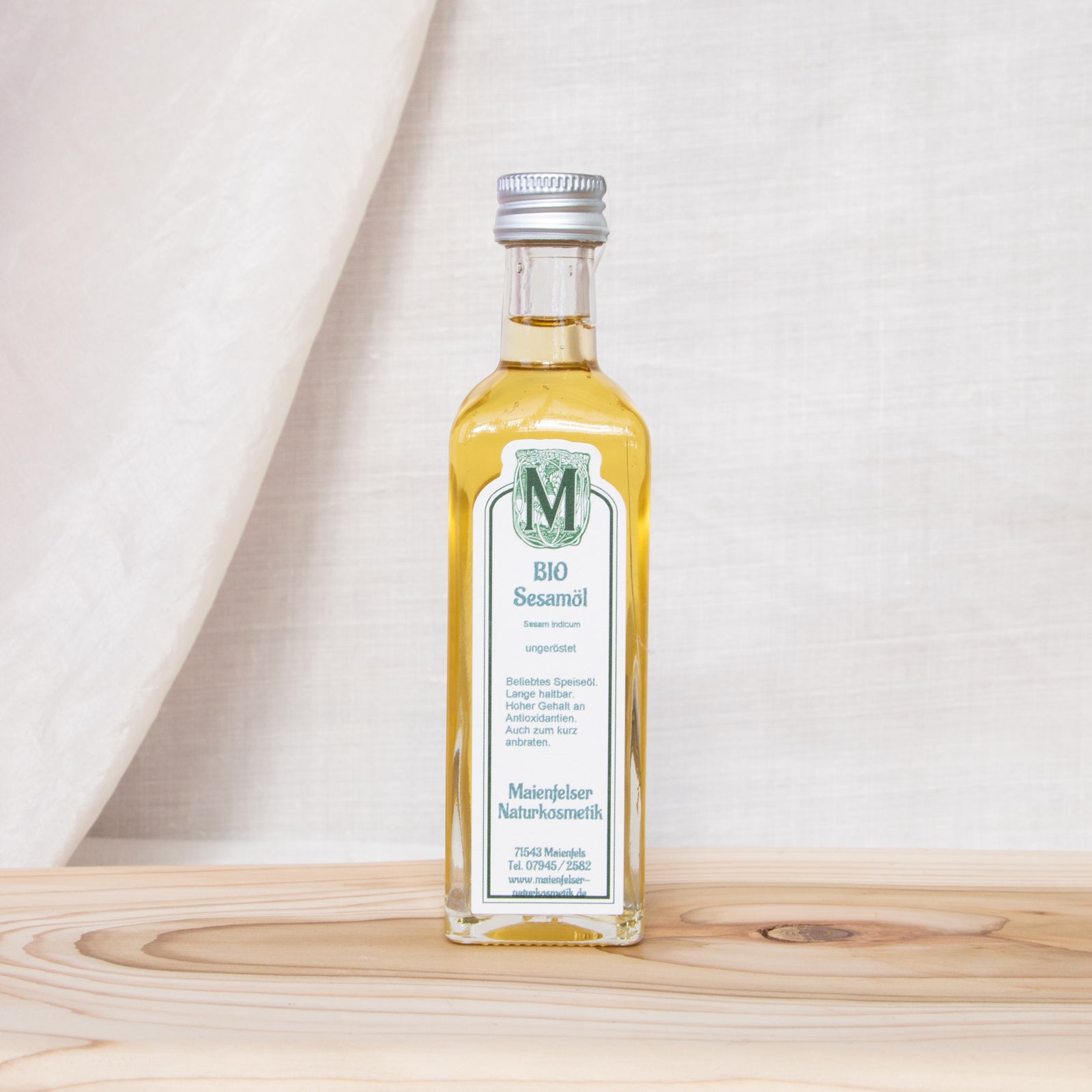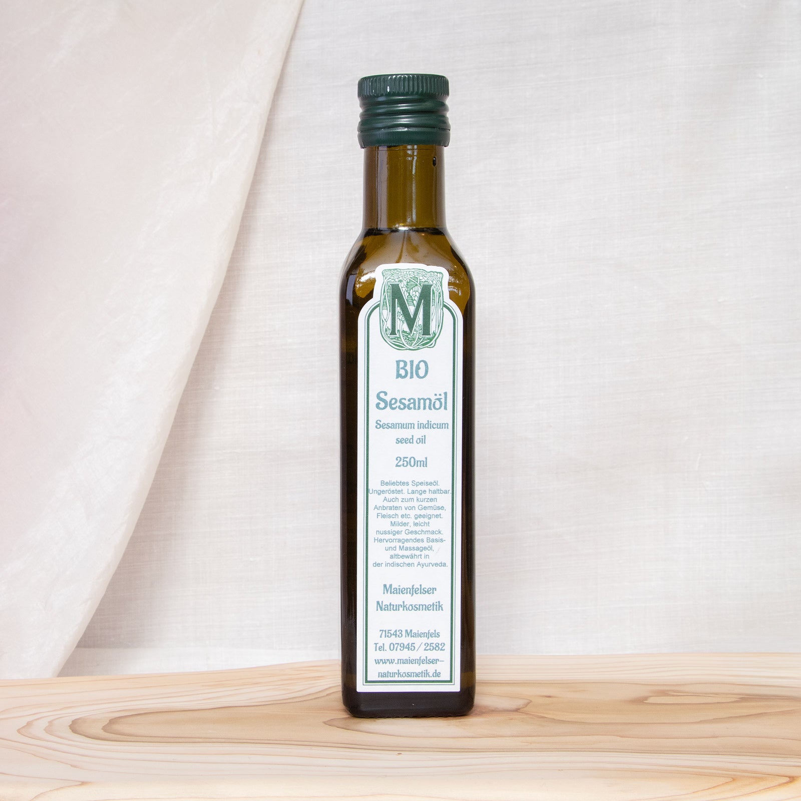 Kosmetische Verwendung: In der indischen Ayurveda seit der Antike bekannt. Viele Entgiftungs- und Pflegeanwendungen werden mit dem Sesamöl betrieben. Es dringt gut in die Haut ein, verbleibt jedoch solange auf der Haut, dass Massageanwendungen unproblematisch und gut durchgeführt werden können. Es eignet sich durch seine Neutralität gut als Basis- oder Trägeröl für ätherische Öle und eignet sich für jeden Hauttyp als Körper- oder Massageöl. Für die Gesichthaut würde ich persönlich jedoch auf wertvollere und schneller einziehende Pflanzenöle zurückgreifen.
