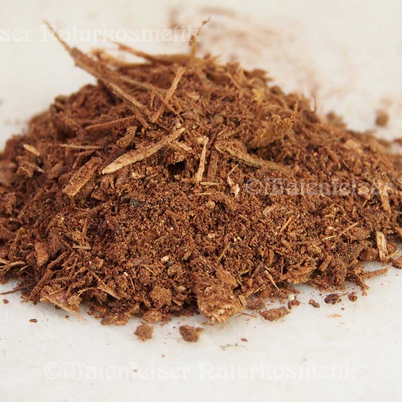 Wie schon in der Rubrik vom Styraxharz erwähnt, gibt es eine große Verbreitung von kleinen schwarzen Kohleplättchen die als Styrax verkauft werden und mit billigem synth. Parfüm besprüht und der absolute Kopfschmerz- und Allergie Auslöser sind. Wir können Ihnen jetzt in begrenzter Menge originale Styraxrinde gemahlen anbieten. Gemahlen deswegen, da die Rindenstückchen für das Räuchern sehr unhandlich sind und sich durch ihre Form schlecht verräuchern lassen. Garantiert pur und nicht vermischt.